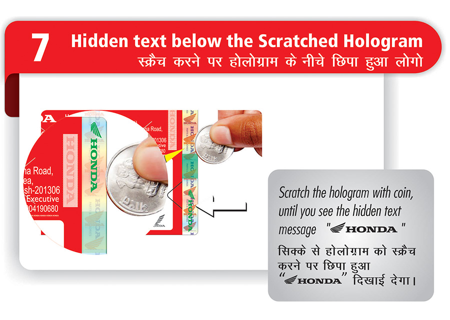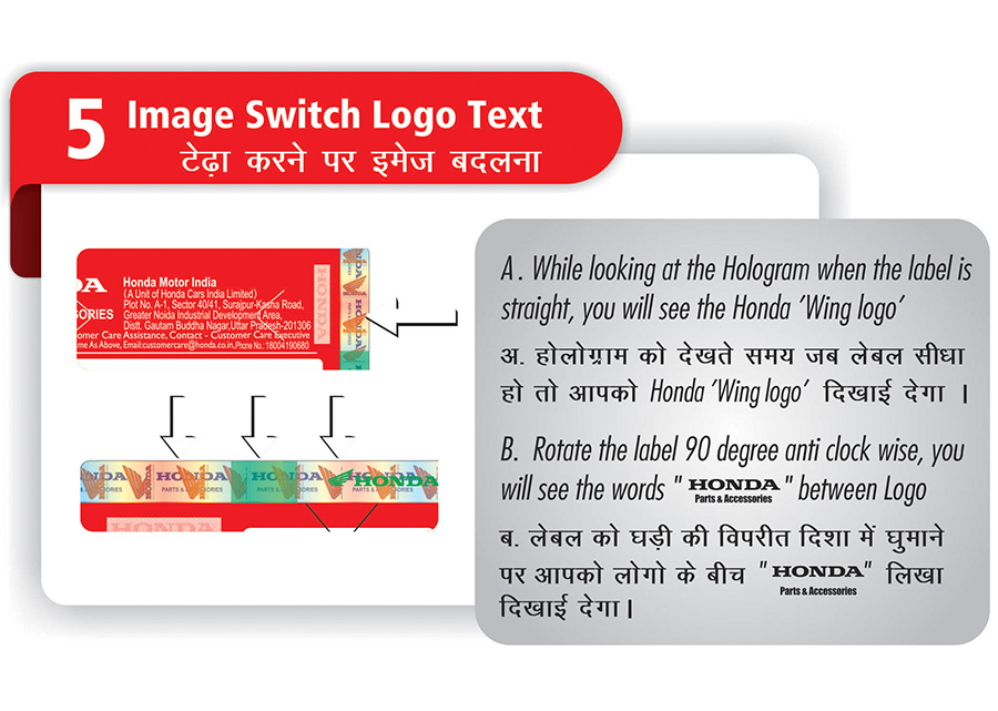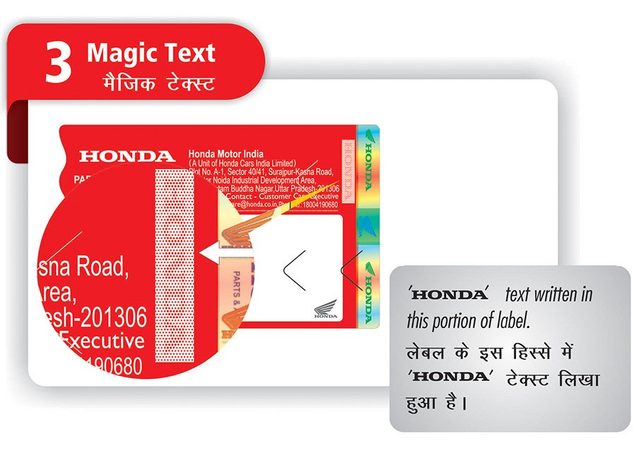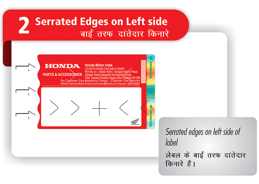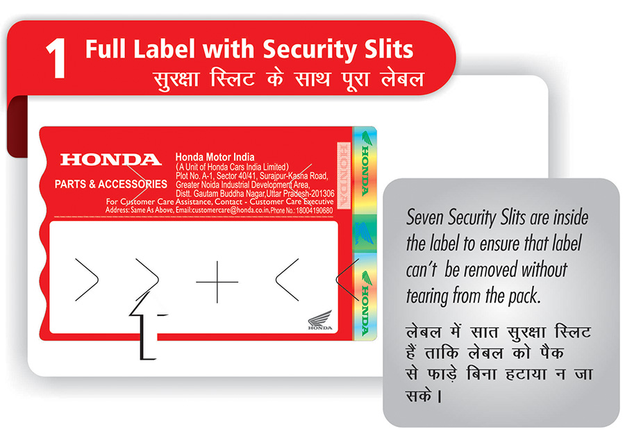 For easy identification, all Honda Genuine Parts contain a high security MRP Label. New MRP Label Introduced from Aug’2018